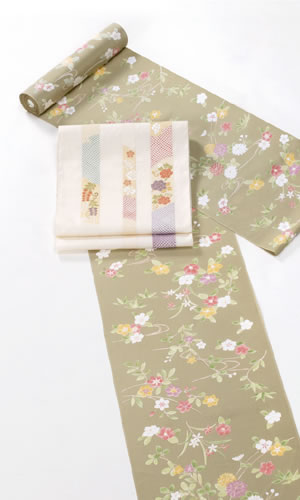 黄緑色の花柄が可愛い北川の小紋です。